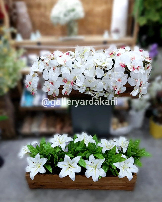 دیزاین باکس همراه با گل ارکیده، برگ ارکیده ، گل لیلیوم و برگ کاهویی کد:156