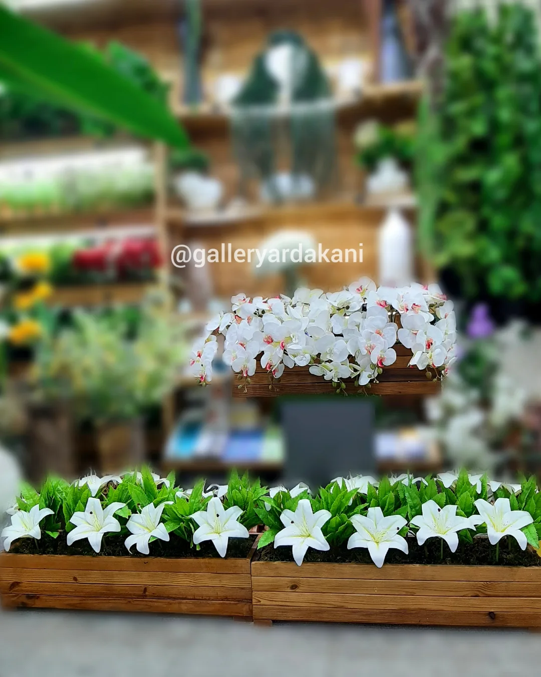 دیزاین باکس همراه با گل ارکیده، برگ ارکیده ، گل لیلیوم و برگ کاهویی کد:156